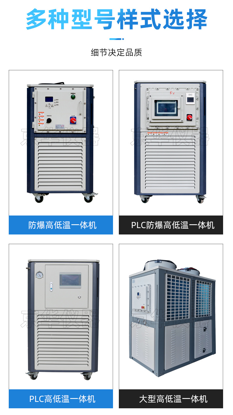 高低溫一體機又叫、高低溫循環泵、加熱制冷一體機、高低溫循環一體機,是專門給反應釜做升降溫用,循環系統的導熱介質是全密閉循環,循環系統帶有液體膨脹容器,膨脹容器和液體循環是獨立系統,膨脹容器并不參與液體循環,只是機械的連接。就算高溫運行的情況下,膨脹容器中的導熱介質都不會高于50度。